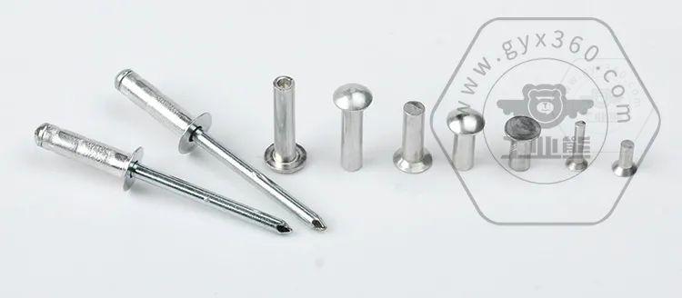 鉚釘是用于將事先制有鉚釘孔的兩個結(jié)構(gòu)件鉚接在一起的緊固件。種類很多,有實心鉚釘,半空心鉚釘,空心鉚釘,管狀鉚釘,無頭鉚釘,標牌鉚釘,抽芯鉚釘等形式形式。材料有碳鋼,不銹鋼,銅合金,鋁合金可供選擇。其中鋁合金常用材質(zhì)有5056、5050、5B05等。根據(jù)安裝場合和空間,頭型也是相當豐富,主要有半圓頭,平錐頭,沉頭,半沉頭,平頭等。由于鉚接的形式是通過鉚釘自身變形成過盈配合的方式,連接工件對比螺紋連接具有相對較好的抗震防松性能,但是缺點也十分明顯,無法像螺紋連接一樣可以多次拆卸使用。所以不適合用于如設(shè)備維修開口或其他需要經(jīng)常開閉使用部位的連接。