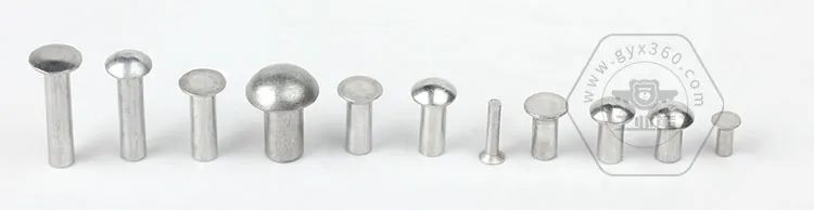 由于鋁具有相對較軟的特性,常溫下壓縮拉伸性能好,因此實心壓鉚鉚釘也常使用鋁或鋁合金制造,實心鉚釘常用材質(zhì)有鋁制鉚釘可直接常溫進行鉚接作業(yè)而不必如鋼制鉚釘需進行提前預(yù)熱軟化工作,可用于非結(jié)構(gòu)件或負載較小的結(jié)構(gòu)件連接。實心鉚釘廣泛的應(yīng)用于刀具、文具賬冊、鎖具、頭盔汽車五金箱包、童車、汽車離合器鋼片、摩托車零配件以及家用電器等。