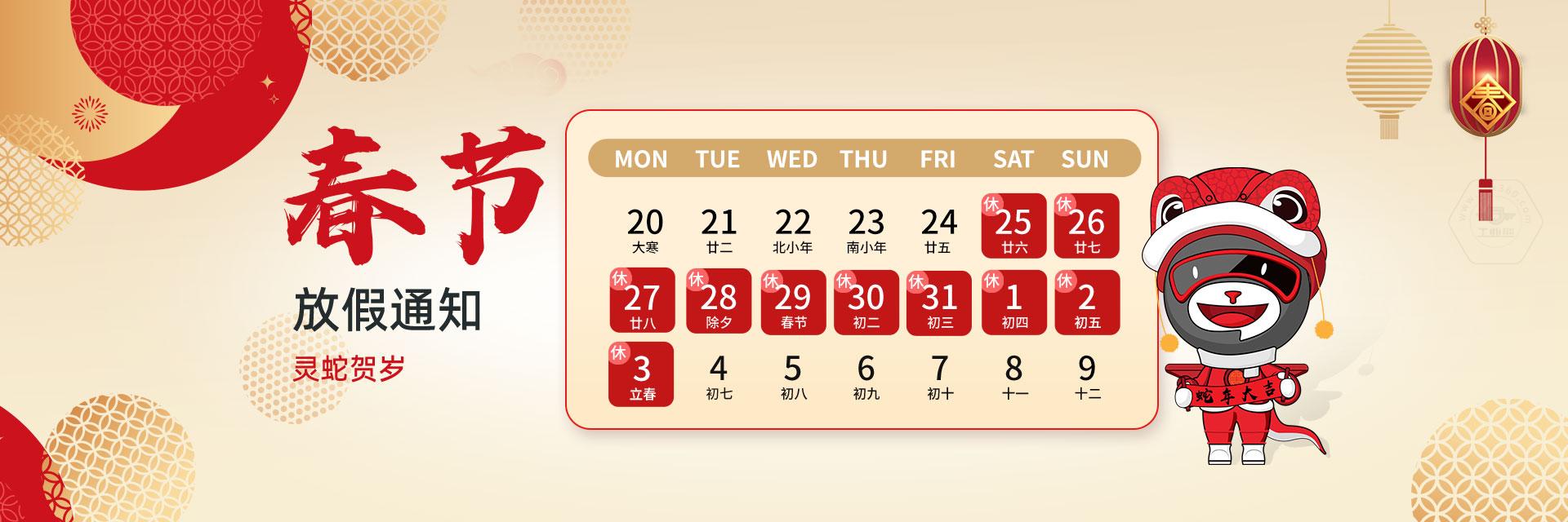 蛇年春節(jié)將至,根據國家節(jié)假日規(guī)定,結合公司實際情況,現(xiàn)就春節(jié)假期安排如下:
