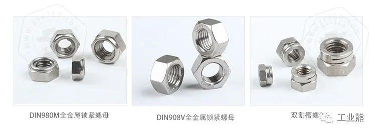 鎖緊螺母分為全金屬系列鎖緊螺母或者非金屬嵌件系列鎖緊螺母等。全金屬系列鎖緊螺母,一般會(huì)利用螺母變形防松的型式,一般通過(guò)割槽的型式,或者擠壓螺紋變形的型式,例如法標(biāo)的雙割槽螺母,以及DIN980V鎖緊螺母,或者采用螺母頂部加裝金屬簧片的型式,起到鎖緊的作用,例如DIN980M鎖緊螺母。